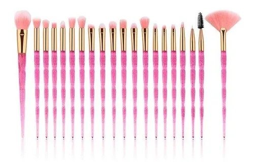 O Kit com 20 Pincéis de Maquiagem Profissionais oferece tudo o que você precisa para criar desde makes básicas até produções elaboradas. Composto por pincéis de diferentes tamanhos e formatos, é ideal para aplicar base, pó, blush, sombra, corretivo, contorno e iluminador com precisão e acabamento uniforme.