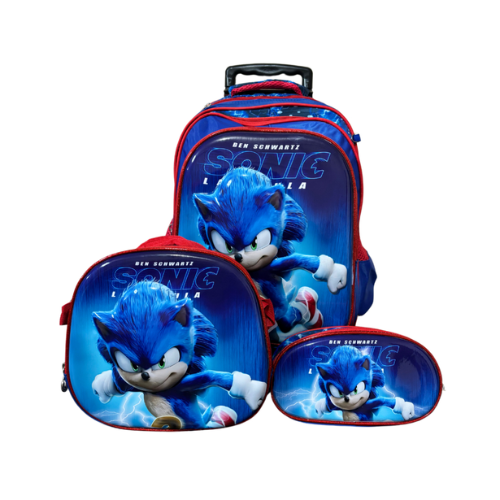 Kit Mochila 3D de Rodinha do Sonic