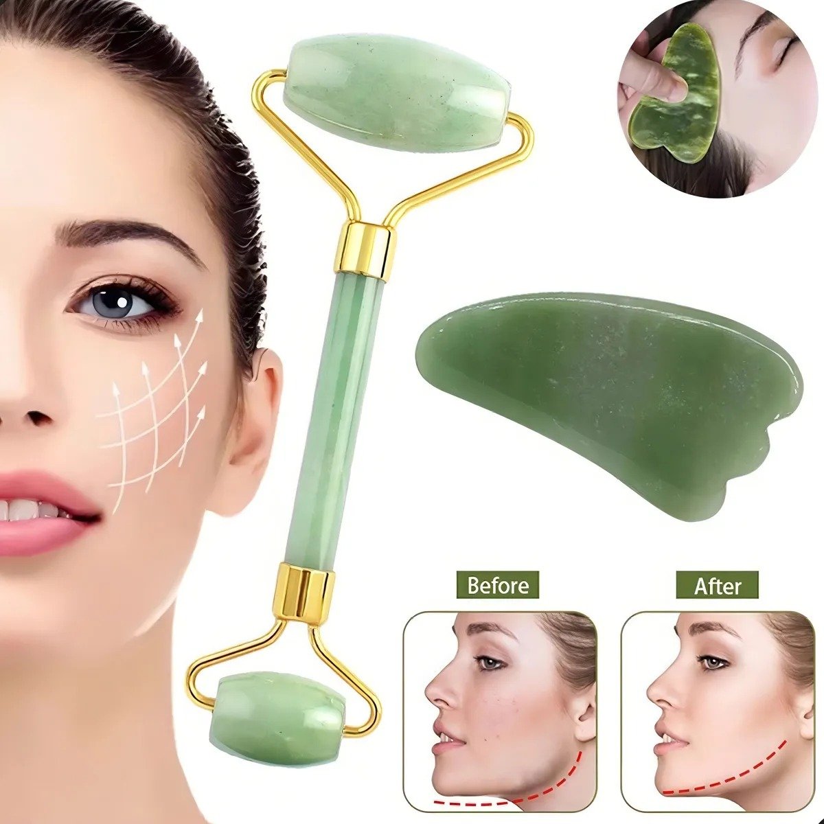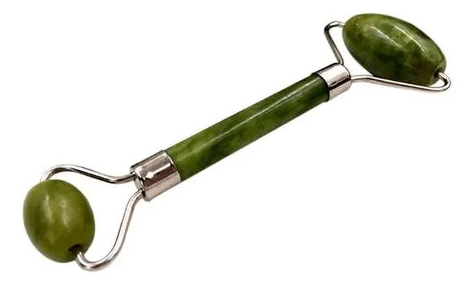 Rolo Massageador Facial de Pedra Quartzo Verde Claro – Beleza e Relaxamento Natural!